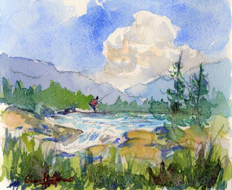 フライフィッシングと登山を愛する水彩画家、柴野邦彦氏によるオリジナル水彩画です。