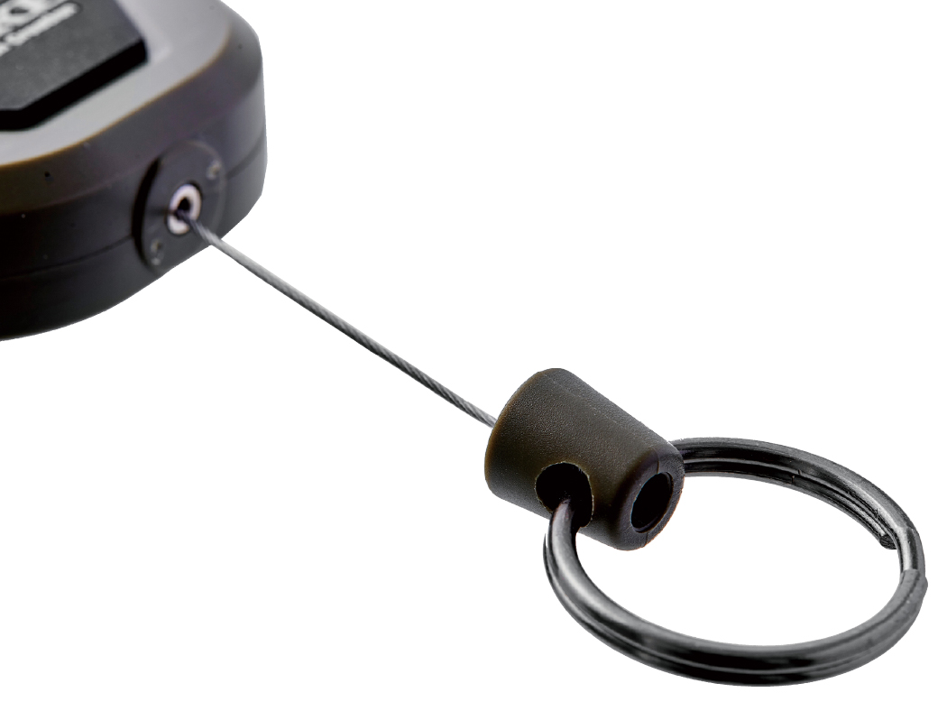 様々な 場所に取付け可能なカラビナタイプのワイヤーリールです。