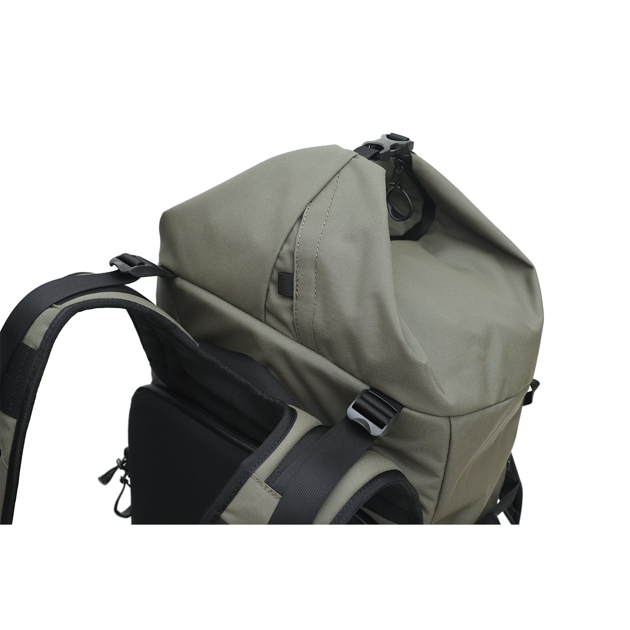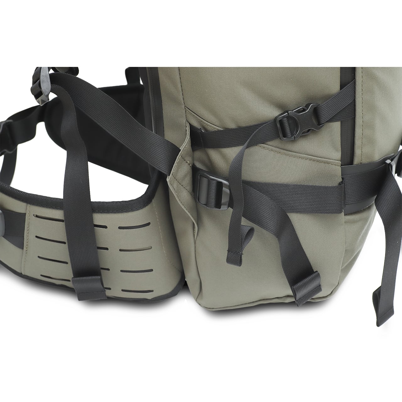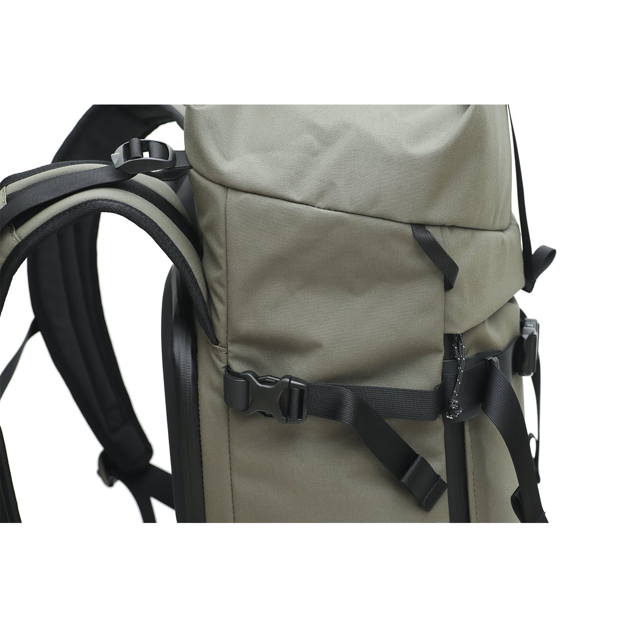 内容物が少ない場合は、ストラップのバックルをショルダーハーネスの付け根付近に配したバックルに止めることで最小限にコンプレッションすることもできます。