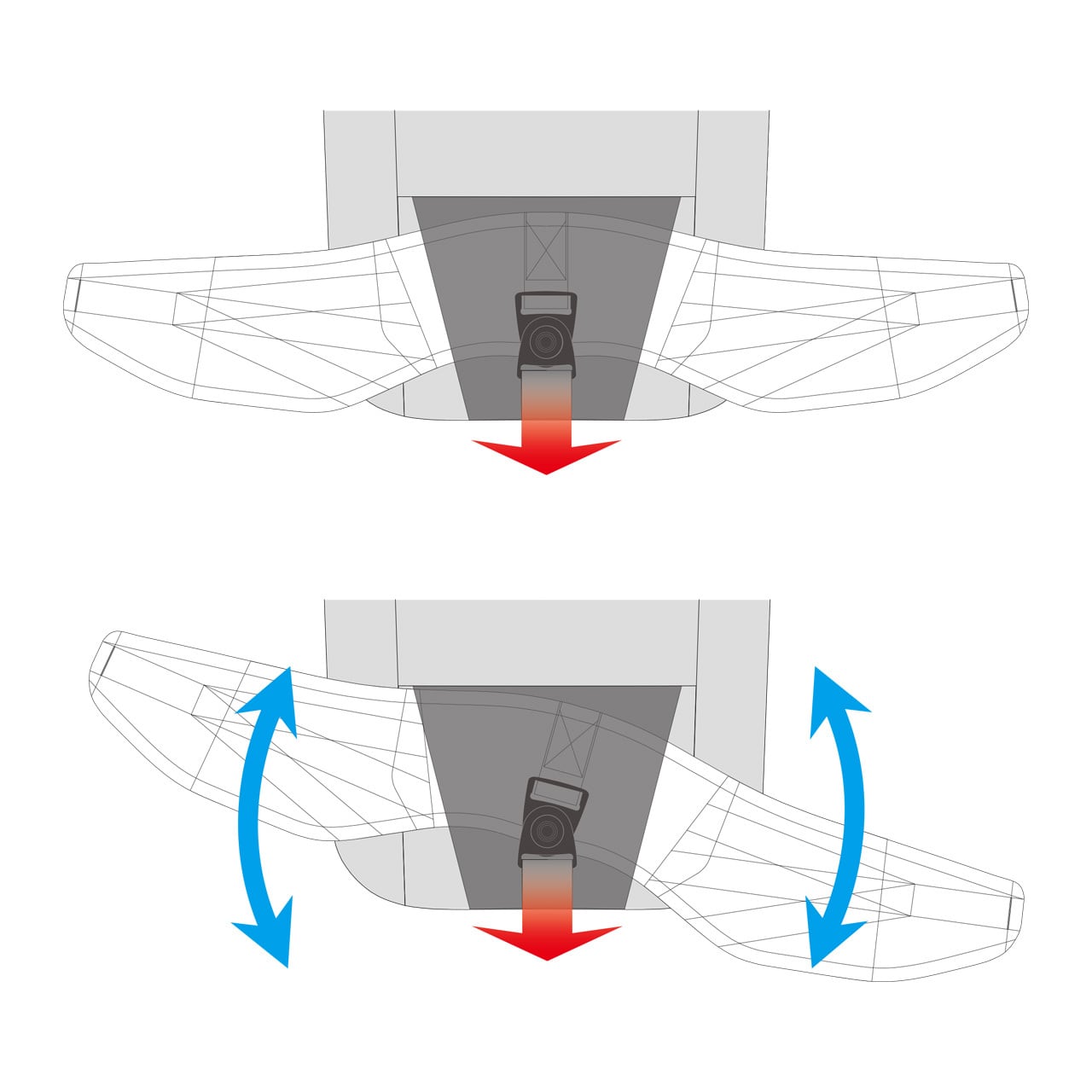 フレームを中央に一本とすることで、バックパックの剛性や重さをウエストベルトへしっかりと載せる効果を確保しつつ、滑走時に必要となる上半身を捻じる運動を妨げませんのでノンストレスで思い描いた滑りを追及できます。