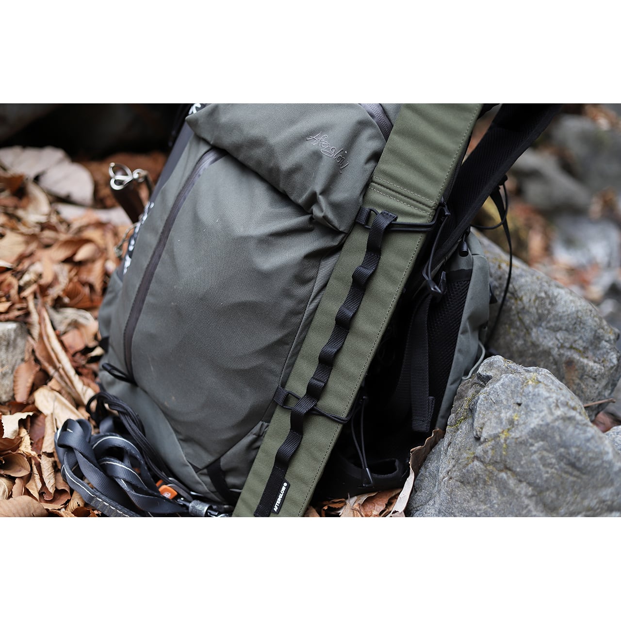 下部に配されたループは、STREAM CHASER BACKPACKのサイドに取り付ける際にバンジーコードを通すことで、ポケットを使わず通常より低い高さに取り付けできるようになります。