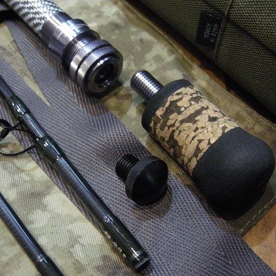 チタンガイドや軽量のグラファイトリールシート、カモフラージュカラーのコルクハンドルなど、ユニークなデザインです。