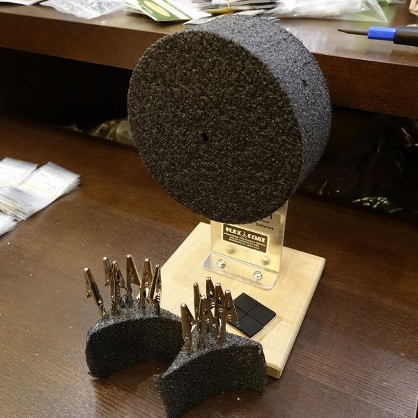 フライホイールはエポキシ接着剤などでムラなくフライをコーティングするためのタイイングツールです。特にSWフライの製作に最適です。