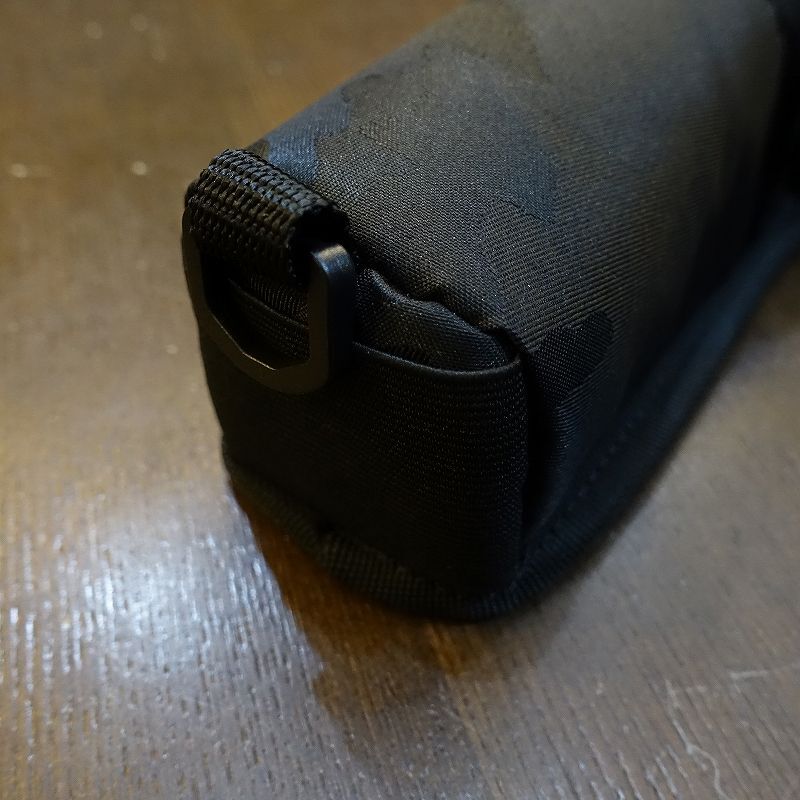 本体下側には熊鈴を取り付ける事が出来るDカン付き(体から離れた位置にあるので鈴が体に触れず、音のこもりが軽減されます)