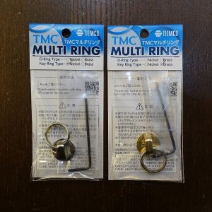 「どこにでも付けられるDカン」をコンセプトに生まれたTMCマルチリング。フィッシングベストやバッグのお好みの場所に簡単かつ確実に取り付けることが出来ます。形状はDカンタイプとキーリングタイプの2種類をご用意。カラーはビンテージ感溢れるブラスと経年変化しにくいニッケルメッキの2色で、取り付けるベストやバッグの風合いに合わせてお選びいただけます。