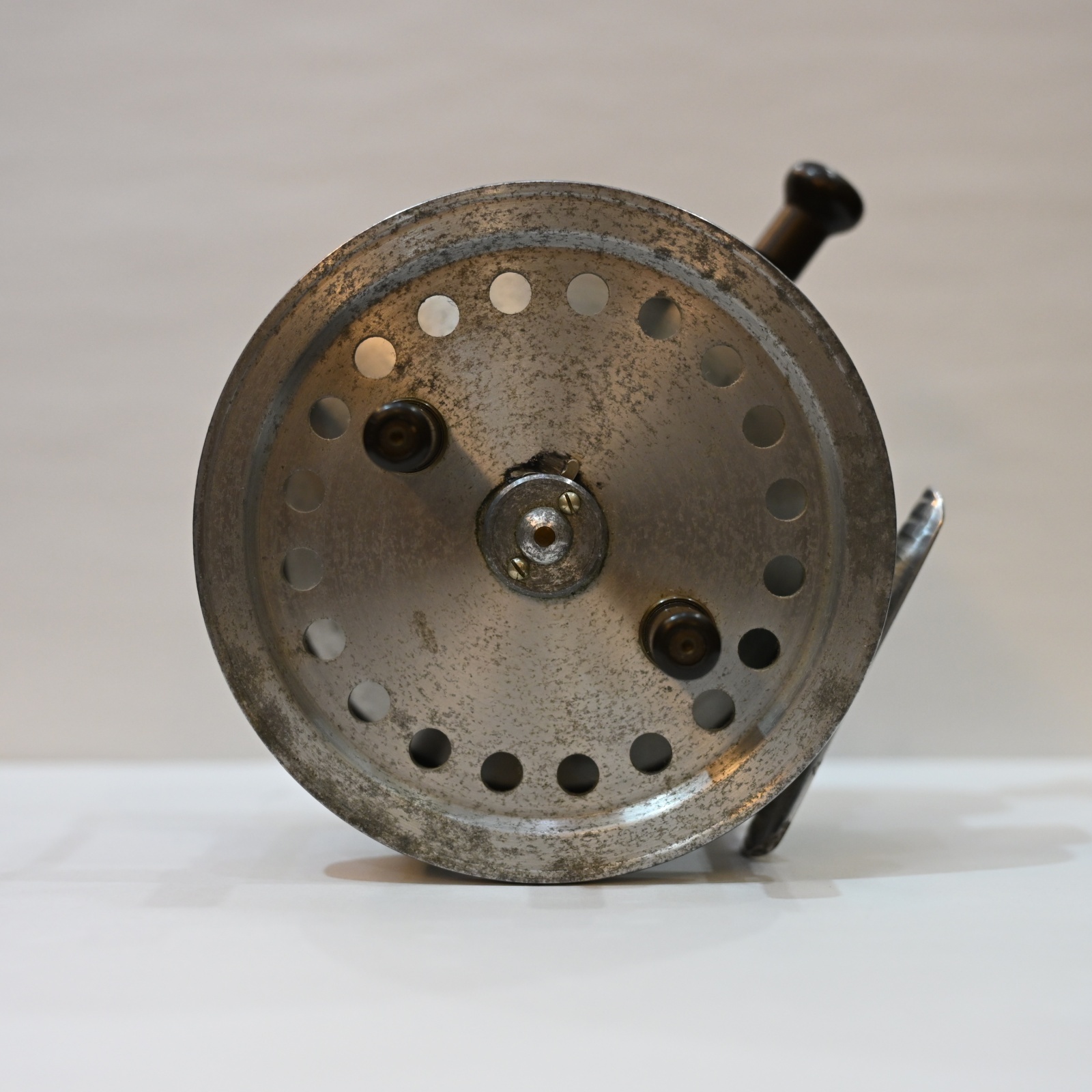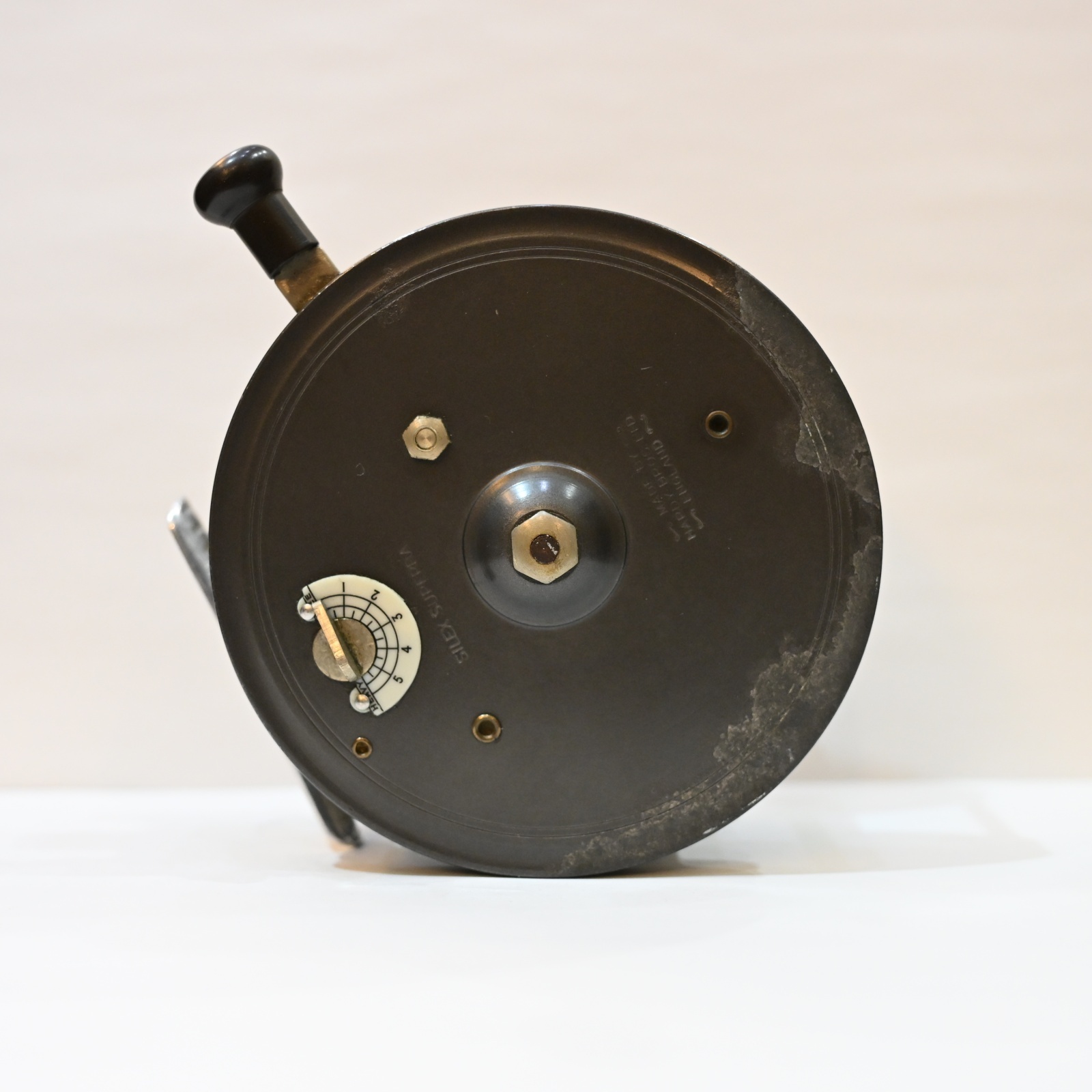 フレームやスプールに大きな歪みや致命的なダメージはなく、オリジナルの状態をしっかり保った状態です。使用感はありますが、それもクラシックリール特有の風合いとしてお楽しみいただけます。