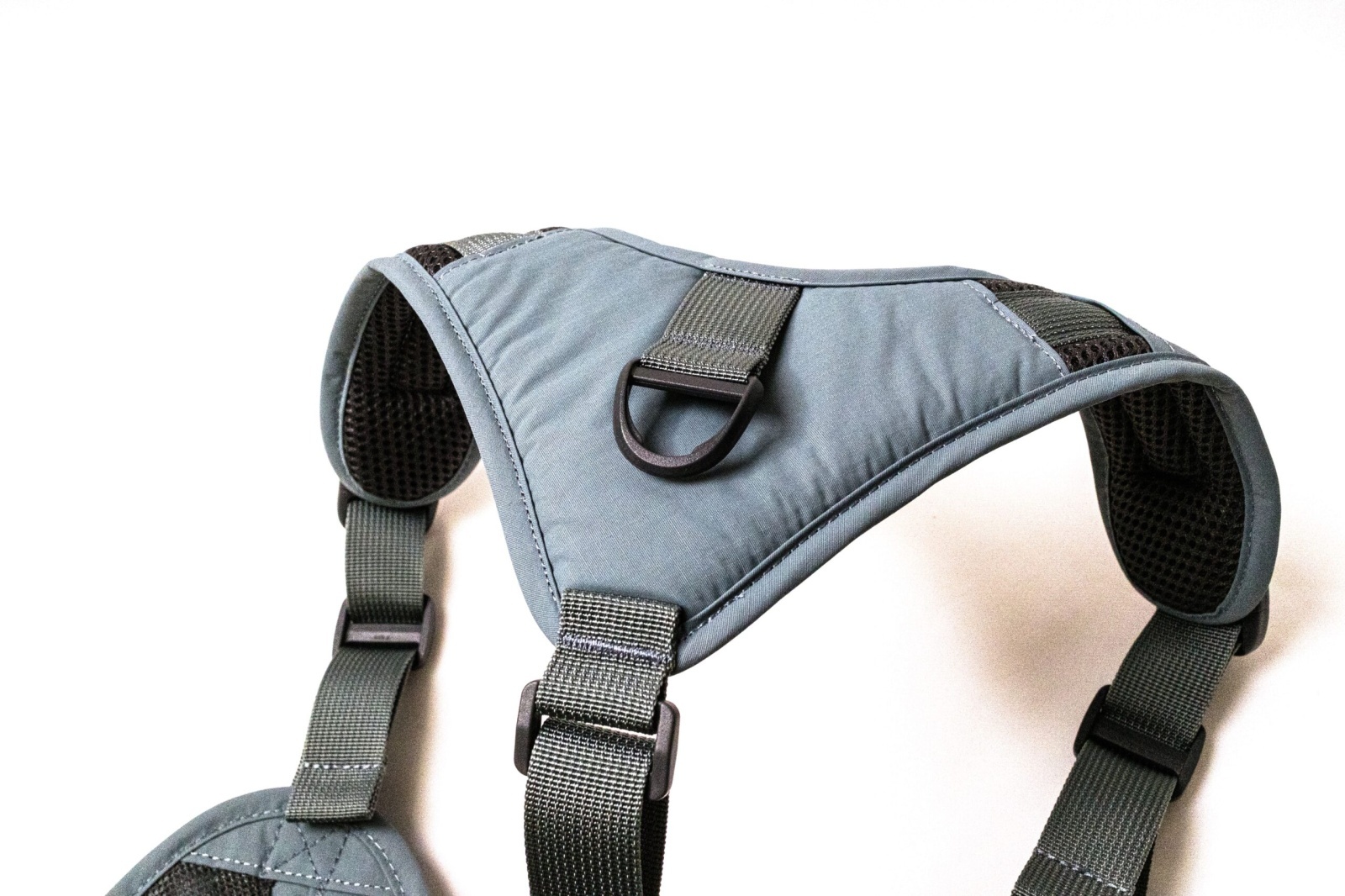 加えて、後身頃と前身頃はワンタッチで分離可能。付属の軽量ハーネスパーツに変更することで、より軽快な釣りを楽しめます。山岳渓流でバックパックを背負う際にも干渉しにくく、より快適な装着感を実現します。