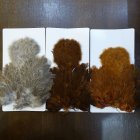 チカブーと呼ばれる部位のマラブーのような外見のウェヴだけのハックルと、大型のヘンハックルの2種類のハックルが採れます。ヘンハックルの鮮明なマダラ模様が目立ちますが、チカブーのほうにも微細な霜降り状の模様が浮き出ているのが特徴です。